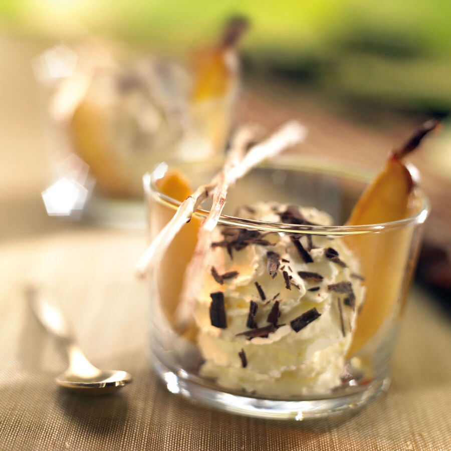 • Image du produit pour 'Poires au gingembre, mousse de chocolat blanc'