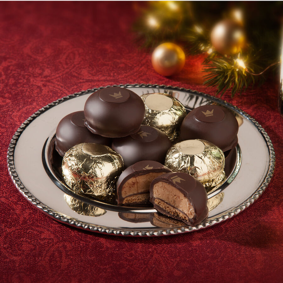 Sous la couverture de fin chocolat noir belge se cache un fourrage de crème au spéculoos fondante. La note croustillante vient du fond en spéculoos, caramélisé et aromatisé avec de la cannelle, de la coriandre et du macis. Confectionnées artisanalement dans une manufacture belge, les gourmandises sont affinées d'une couronne dorée sur le sceau en chocolat avant d'être emballées dans une feuille dorée. La fine composition a reçu deux étoiles lors du Superior Taste Award 2015 international par l'institut International Taste & Quality Institute à Bruxelles. Un vrai délice de Noël pour accompagner le thé ou le café. 8 pièces, 160 g.