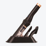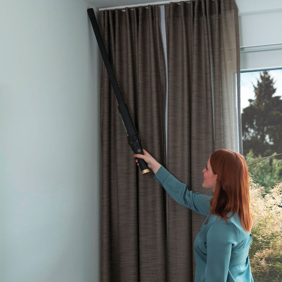 Cet aspirateur à main sans fil de dernière génération très pratique se passe de câble et de sac. Avec son puissant moteur, ce poids plume très maniable (pèse 520 g) aspire pendant 20 minutes sans recharge et élimine sans peine la moindre miette. Utilisez la buse à joints, la buse à brosse et la longue buse souple pour aspirer dans les tiroirs et tous les endroits difficiles d'accès. Plastique, Ø 7,5 x 41 cm de longueur, filtre lavable, 14,8V/110W, capacité de la batterie 2000 mAh, livré avec de nombreux accessoires.