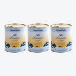 La recette vient de la femme norvégienne de Hagen Grote, Tove. Les poissons d'eau froide très aromatiques sont fournis par le beau-frère de Hagen Grote, Haakon qui les pêche avec le bateau de pêche familial "Olagutt" dans les eaux de Lofoten.Ce mets exquis est fabriqué directement sur place, sur la petite île Langenoya, à 300 km au nord du cercle polaire. Chaque boîte de 800 g contient 17-20 quenelles de poisson hautement aromatiques et le meilleur fond de poisson. Vous réalisez des sauces fantastiques grâce à ce fond mélangé avec de la crème fraîche et un peu de vin blanc, des herbes aromatiques fraîches, du safran, du curry ou de la moutarde verte. Est livré avec un livret de recettes.