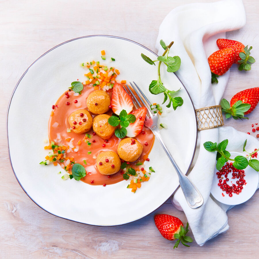 • Image du produit pour 'Quenelles de saumon aux fraises avec brunoise de légumes'