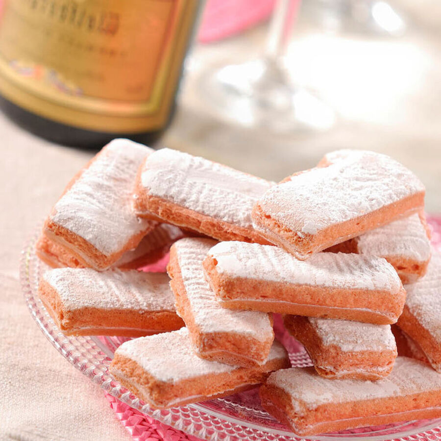 Depuis 1775, la maison Fossier à Reims cuit ces fameux biscuits rosés - fondant tendrement et cependant croustillants. En 1775, ils furent servis avec le champagne lors du couronnement de Louis XVI. Dès lors ils devinrent le biscuit préféré de la famille royale. La recette originale est transmise dans la famille Fossier de génération en génération. Par une double cuisson (bis-cuit), les originaux à la couleur rose de Reims ne se décomposent pas si on les trempe dans le champagne. Ils sont servis jusqu'à aujourd'hui avec le champagne et ils sont également excellents dans la fameuse charlotte. Sont livrés avec des idées de recettes.