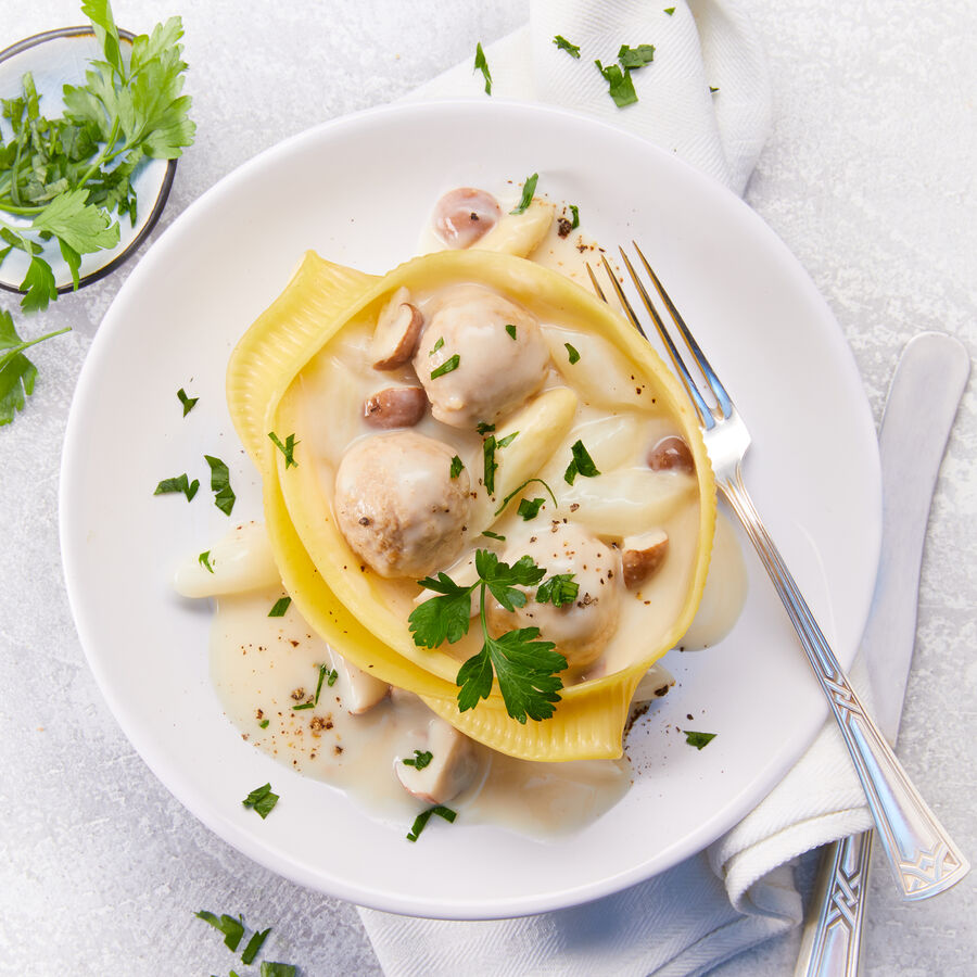 • Image du produit pour 'Ragoût d'asperges et de champignons aux quenelles de poularde dans Caccavella'