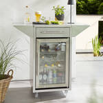 Trois étagères et un volume total de 63 litres offrent suffisamment d'espace pour les aliments sensibles à la température ou pour refroidir de nombreuses boissons. Tout est bien rangé et bien visible derrière un verre de sécurité isolant comportant un filtre de protection solaire UV. Éclairage intérieur commutable. Température réglable en continu de 0 à 10 °C. Sous le plan de travail de 51 x 60 cm, un tiroir spacieux accueille accessoires & ustensiles. Deux plateaux latéraux rabattables de 25 x 60 cm chacun permettent d'obtenir une confortable surface totale de travail de 101 x 60 cm.