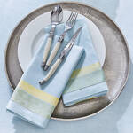 Des motifs de Pâques peints à la main au XIXe siècle constituent le motif de ces serviettes de table en lin de très haute qualité. Elles sont tissées sur des métiers à tisser historiques avec de vieilles cartes perforées jacquard. Des fleurs printanières, des papillons et des lapins dans des tons pastel, ainsi que la surface naturellement brillante et irisée, confèrent un aspect luxueux et une charmante légèreté.