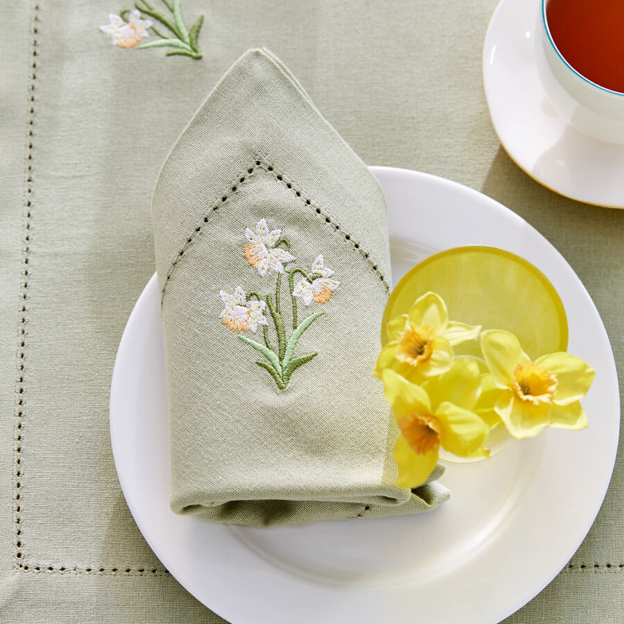 Serviettes : Laissez entrer le printemps avec ce linge de table aux narcisses minutieusement brodés