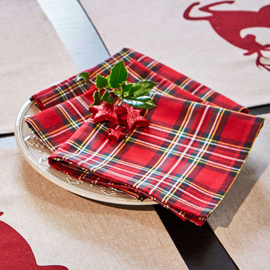 Grâce au tartan tissé classique et aux motifs stylisés de cerf, la symbiose entre l'ambiance country britannique intemporelle et le style campagnard moderne est parfaite. Les nappes, les chemins de table, les serviettes et les autres textiles de cette gamme vous permettent de créer une atmosphère chaleureuse et conviviale, que votre table soit dressée de façon rustique ou élégante.