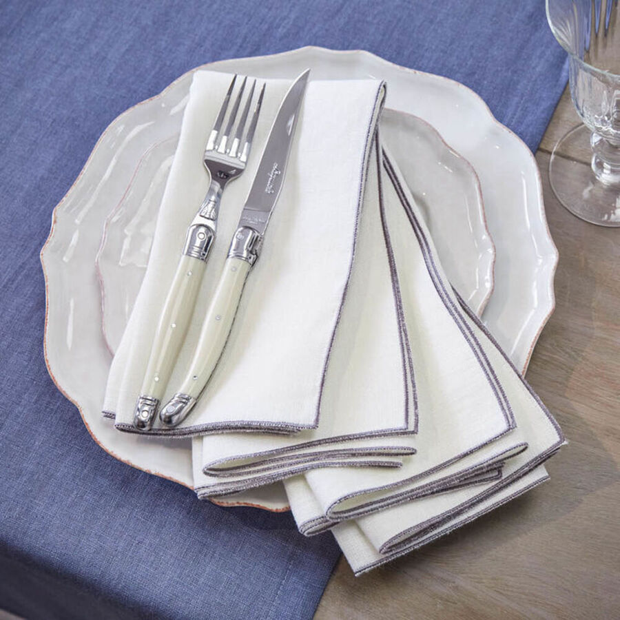 Serviettes en lin, lot de 4, 45 x 45 cm liseré bleu