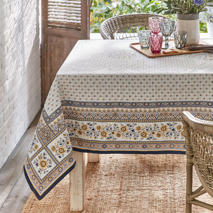 Des motifs floraux détaillés et des couleurs rappelant une journée d'été en Provence ornent ce linge de table de qualité supérieure en double tissage. Deux tissus différents sont tissés ensemble lors du processus de tissage. La couche inférieure du tissu, avec ses fils très fins, apparaît à la surface et les deux tissus sont solidement reliés. C'est ainsi que naît le motif floral, se détachant clairement. Avec son joli motif, ce linge de table attirera les regards et confèrera fraîcheur et charme à vos pièces. Il repose parfaitement sur la table, ne glisse pas et protège les surfaces sensibles grâce à son tissu compact.