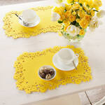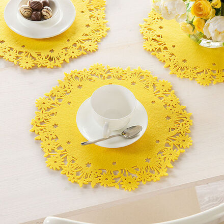 Des bordures, richement travaillées, aux fines fleurs agrémentent cette décoration de table printanière. Dressez joliment votre table avec ces sets et chemins de table ou posez-y vos arrangements floraux. L'épaisseur de 3,5 mm préserve vos précieux meubles des rayures, de l'humidité et des plats chauds. Feutre acrylique, nettoyable avec un chiffon humide.