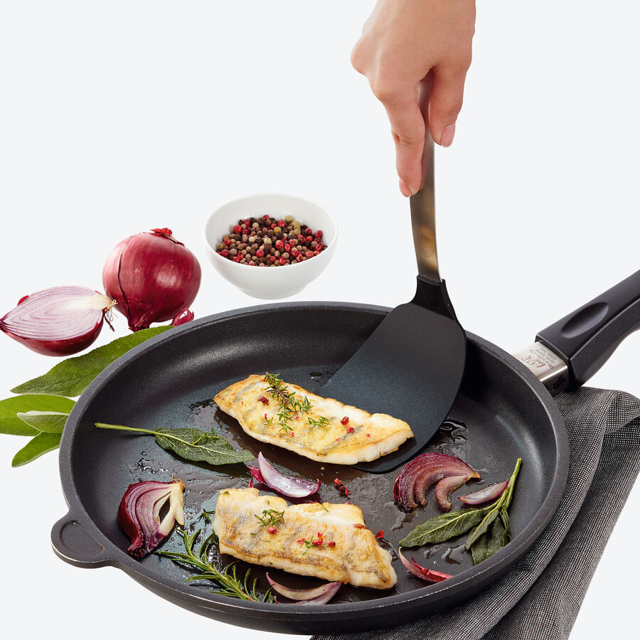 Hagen Grote Spatule inox/nylon - 12,5 x 8,5 cm, n'abîme pas les poêles, manche ergonomique, résiste à la chaleur, passe au lave-vaisselle