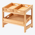 Hêtre massif huilé, 45,5 x 31,4 x 41,5 cm (l/p/h), 2 petites boîtes, 29 x 21 x 6 cm (l/p/h), grande boîte 42 x 29,5 x 6 cm (l/p/h), poids 5 kg.