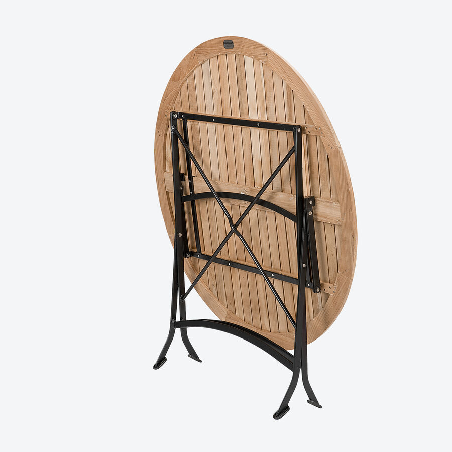 • Image du produit pour 'Table ronde de jardin pliable en fer résistant aux intempéries et en teck'