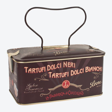 chocolat noir (sucre, pâte de cacao, beurre de cacao, èmulsifiant: lécithine de soja, arôme naturel de vanille), chocolat blanc (sucre, beurre de cacao, lait entier en poudre, lactose, émulsifiant: lêcithine de soja, arôme naturel de vanille), noisette (35%), sucre en poudre, cacao en poudre, gaufrette (farine de blé, sucre, gras anhydre de lait, lactose, protéines du lait, sel, farine maltée d'orge, agent levant: carbonate de sodium). Peut contenir des traces d'autres fruits à coque, oeufs et arachides.