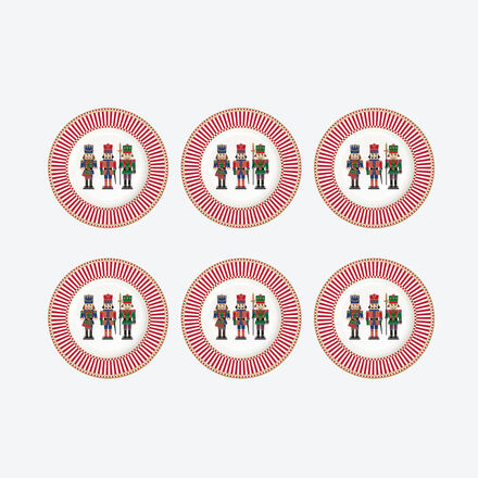 Avec cette vaisselle en porcelaine au charme nostalgique, créez une ambiance parfaite à table. Diverses figures de casse-noisettes, habillées de couleurs vives, ornent la tasse et sa soucoupe, accompagnées d'un motif à rayures rouges et d'une banderole. Complétez le service de table Casse-Noisette avec 6 assiettes plates assorties (Réf. 374N13), 6 assiettes à dessert (Réf. 374N14), 6 assiettes creuses (Réf. 374N15), un présentoir à étages pour les gourmandises (Réf. 374N17) et une boîte à biscuits (Réf. 374N18).