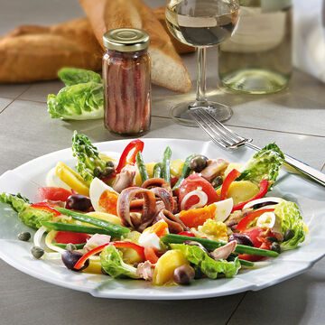 Rare, le thon blanc est le meilleur. La différence de goût avec les gros thons rouges classiques est infiniment grande. Le petit thon blanc de ligne est beaucoup plus aromatique, tendre et fin en goût. Pendant quelques semaines de l'année seulement, le précieux thon est pêché à la ligne aux abords des côtes basques espagnoles. Les captures sont très limitées et il est difficile de faire face à une pénurie. C'est pourquoi, avant chaque saison de pêche, nous nous assurons un contingent fixe pour Hagen Grote. De surcroît, nous contrôlons et garantissons une fraîcheur absolue de préparation et de conservation. Le thon est conservé dans une des meilleures huiles pressées à froid. Vous pouvez utiliser ce thon dans une salade niçoise ou dans une sauce épicée pour un vitello tonnato. Dans le plat de pâtes sicilien, le thon blanc est aussi simple qu'extraordinaire en accompagnement d'une sauce aux tomates fraîches et aux olives noires. Livré avec recettes.