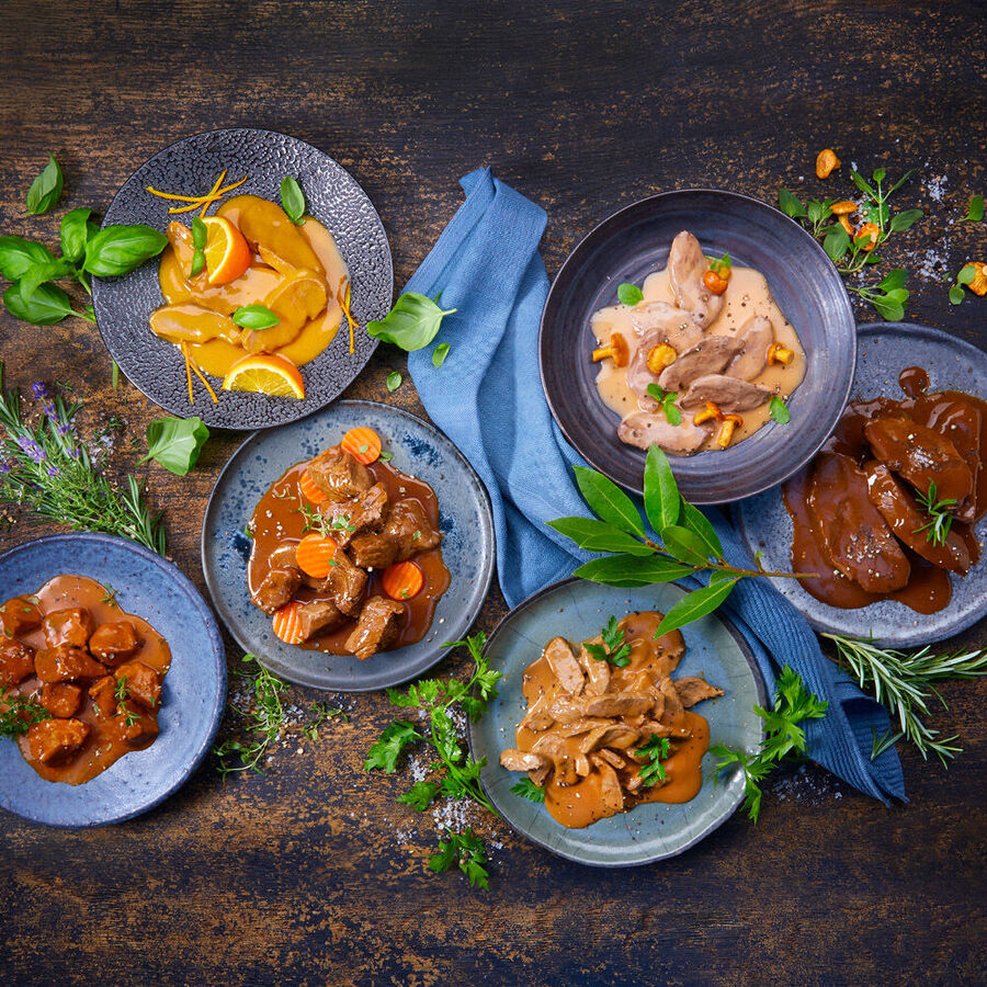 Ce classique de la cuisine gastronomique est cuisiné à partir d'excellents ingrédients frais dans notre petite manufacture pour une préparation confortable et rapide à la maison. Savourez un veau tendre et délicatement doré dans une sauce à la crème, finement assaisonné de vin blanc et d'épices. Suggestions de préparation pour ce plat traditionnel suisse : émincer 200 g de champignons et les faire revenir à feu vif dans du beurre clarifié. Mouiller avec 50 ml de vin blanc et laisser réduire complètement. Ajoutez le plat de viande gourmet et faites chauffer pendant 5 minutes (ne pas faire bouillir). Assaisonnez à votre goût avec un peu de sel et de poivre. Préparé avec soin et l'amour du goût, coupé et mis en bocal à la main.