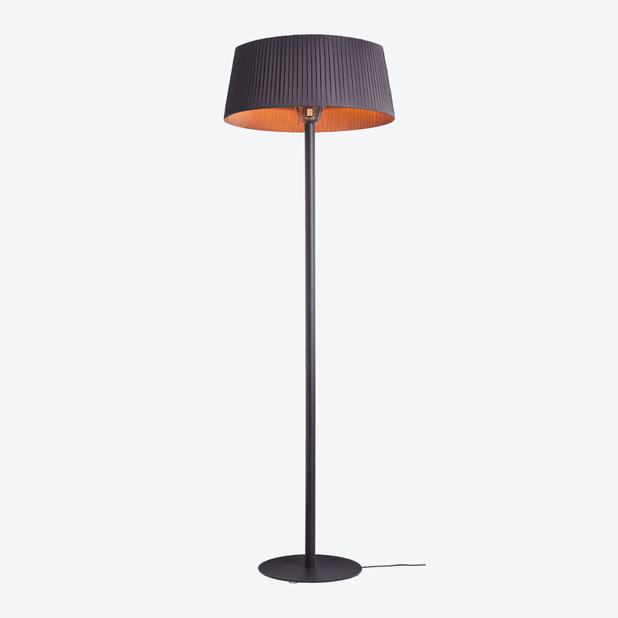 Le chauffage de terrasse électrique vous offre une chaleur rayonnante agréable sur 14 mètres carrés, même par vent. Les puissants éléments chauffants halogènes d'une longue durée de vie de 10 000 heures (disponibles sur demande) peuvent être réglés sur 3 niveaux de chaleur (900, 1 200 et 2 100 watts). Ils atteignent leur température en seulement 5 secondes et ont une durée de combustion extra-longue. L'apparence de l'appareil est particulièrement belle. Sous la forme d'un lampadaire sur pied, le chauffage halogène crée également une atmosphère (de salon) chaleureuse et confortable à l'extérieur. Il est sûr, économique et aussi puissant qu'un chauffage au gaz d'une puissance supérieure en KW. Vous pouvez l'utiliser en toute sécurité, à l'intérieur comme à l'extérieur, et il n'est pas nécessaire de manipuler les bouteilles de gaz. Si jamais vous oubliez la housse, ce n'est pas un problème car l'abat-jour est résistant aux UV, aux intempéries ainsi qu'aux éclaboussures. Peut être monté de manière variable sur 2 - 3 hauteurs.
