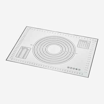 Grâce à son effet antidérapant, le tapis permet un travail confortable et stable, protège le plan de travail des rayures et salissures. Gâteaux, pâtisseries et pizzas, toutes les étapes de préparation se font aisément : pétrir, étaler, cuire ou congeler. Graduations pratiques. Ne convient pas comme planche à découper. Peut être enroulé pour un rangement gain de place.