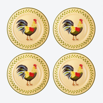 Assiettes plates, motif coq, Ø 25 cm, lot de 4