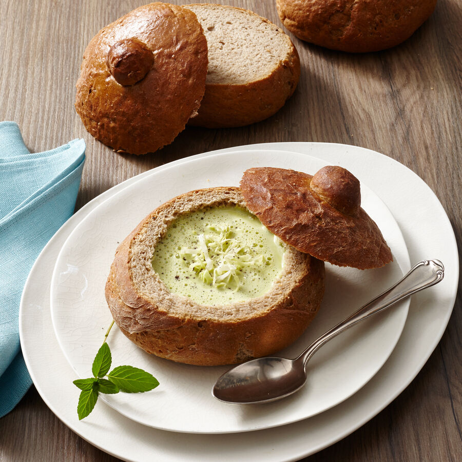 • Image du produit pour 'Velouté vert de petits pois-salade dans des bols de pain'