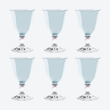 Ces verres aux reflets romantiques sont fabriqués dans le pays d'origine du verre de cristal, la grande région de Bohême. Conformément à nos normes sévères en termes de conception, fonctionnalité et qualité, les verres en cristal sans plomb se distinguent par leur brillance et leur clarté particulières. Leur forte réfraction lumineuse crée de jolis reflets doux. Élégants verres en cristal de fabrication mécanique, paraison en cloche, jambe à boule, aux 3 couleurs délicates. 190 ml, 14 cm de haut.