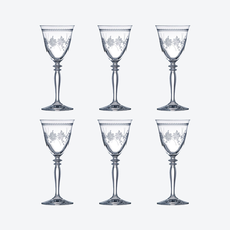 Verres à vin en cristal de Bohême avec motif floral en filigrane par pantographie