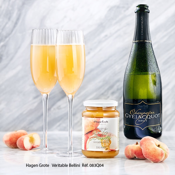 Rafraîchissez-vous et vos invités avec, par exemple, un apéro au sureau , un Amarena Amore Mio fruité et sucré ou le classique parmi les apéritifs doux et fruités : un Bellini à la pêche, que vous pouvez facilement réaliser vous-même avec notre ensemble cocktail Bellini, composé d’un champagne brut aux fines bulles élégantes et d’une base de cocktail à base de pêches blanches de vigne.