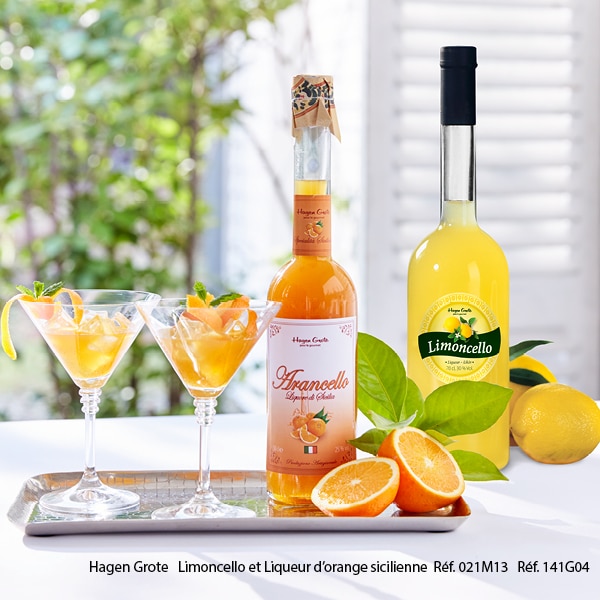 Les liqueurs d’agrumes, le Limoncello et la liqueur d’orange, ne sont pas seulement appréciées dans leur pays d’origine, l’Italie – avec du prosecco en apéritif ou servies glacées en digestif. Notre Limoncello aromatique est fabriqué de manière traditionnelle à partir de fruits mûris au soleil des variétés de citrons Sfusato et Femminello Siracusano. Ils sont soigneusement épluchés à la main afin que la liqueur puisse bénéficier de tout l’arôme des huiles essentielles qui se trouvent directement sous la peau.