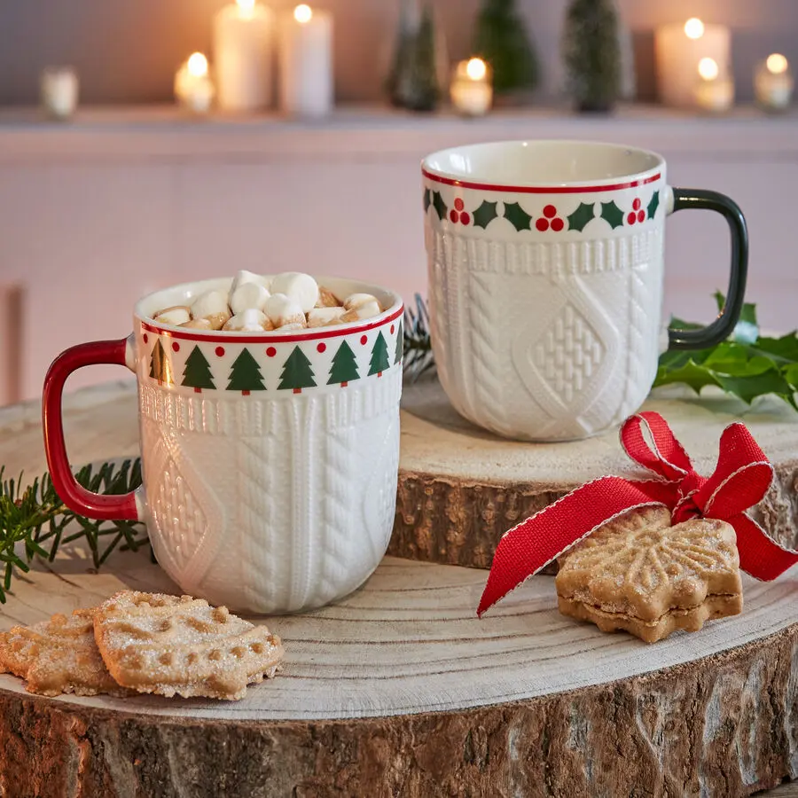 Les tasses en porcelaine de haute qualité sont minutieusement décorées avec des motifs saisonniers et de tricot style norvégien. Les boissons chaudes seront élégamment servies dans ces grandes tasses pendant l’hiver.