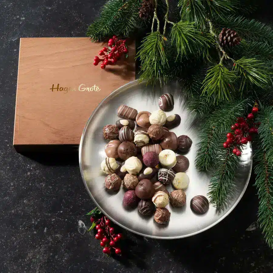 Assortiment de chocolats fins dans un élégant coffret en bois