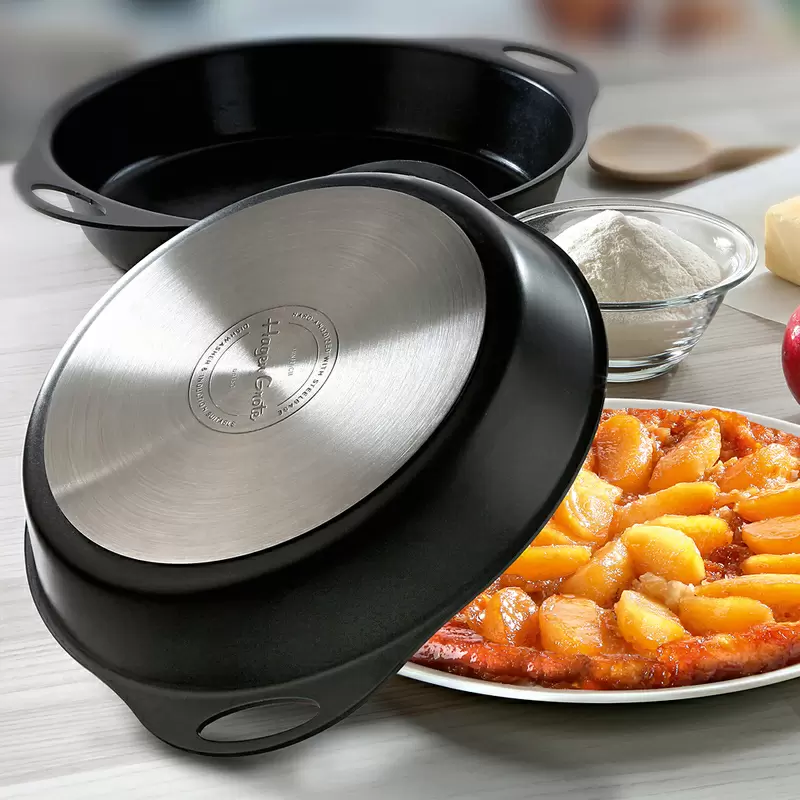 Ce moule permet de cuire rapidement et facilement la délicieuse tarte aux pommes inventée par les sœurs Tatin dans la petite ville de Lamotte-Beuvron. Nous fabriquons ce moule selon nos standards élevés avec une exigence particulière de fonctionnalité.
