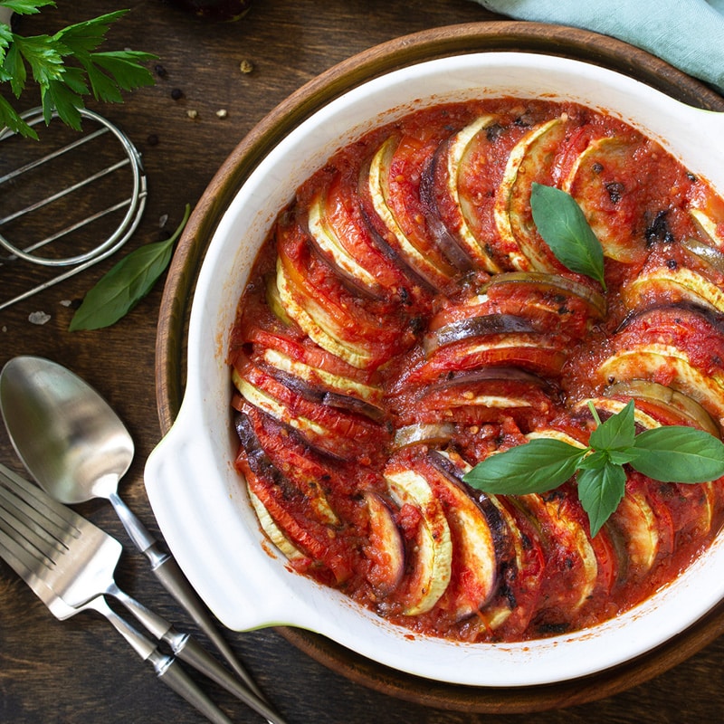Les légumes frais, qui mûrissent sous le soleil du sud pour atteindre leur pleine maturité et leur bon goût, constituent la délicieuse base de la cuisine provençale. La ratatouille, plat bien connu, est préparé avec les légumes typiques de la région. En Provence, le ragoût de légumes est servi froid ou chaud en entrée, en plat principal ou en accompagnement de plats de viande et de poisson. La préparation est simple, mais le résultat dépend de la qualité des légumes utilisés. En particulier, le degré de maturité et donc le goût des tomates est décisif pour ce ragoût vraiment délicieux.