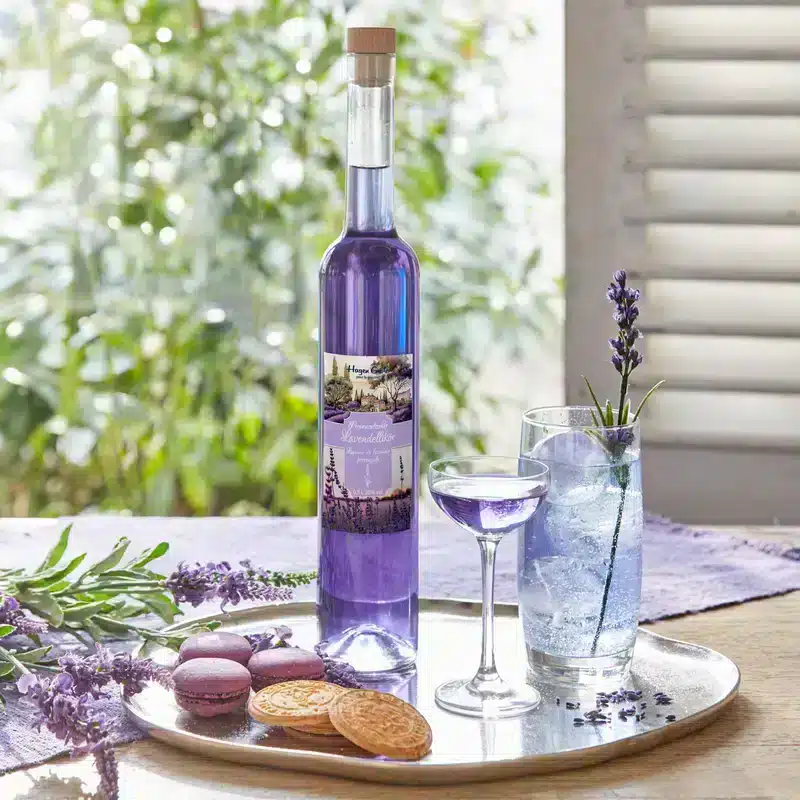 Cette liqueur unique est produite dans notre manufacture à partir des meilleures fleurs de lavande vraie (Lavandula angustifolia) de Provence. Les notes florales caractéristiques de cette liqueur sont parfaitement mises en valeur lorsqu’elle est servie bien fraîche en apéritif ou dans des cocktails. Pure sur glace, complétée de Prosecco ou sous forme de gin à la lavande (2 cl de gin, 1 cl de liqueur de lavande, 5 cl d’eau tonique), elle est un régal hors du commun. Sur le plan culinaire, elle se marie à merveille avec les desserts glacés et aux fruits. Contient des colorants.