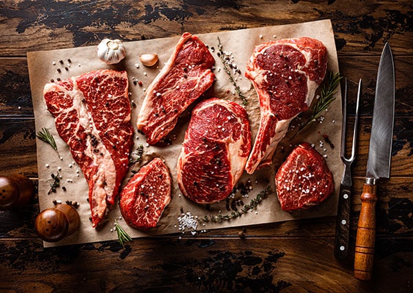 Les spécialités de viande de choix comme le bœuf Wagyu Angus ne doivent être assaisonnées qu’avec du sel et du poivre, afin de ne pas masquer les excellentes saveurs propres à cette viande.