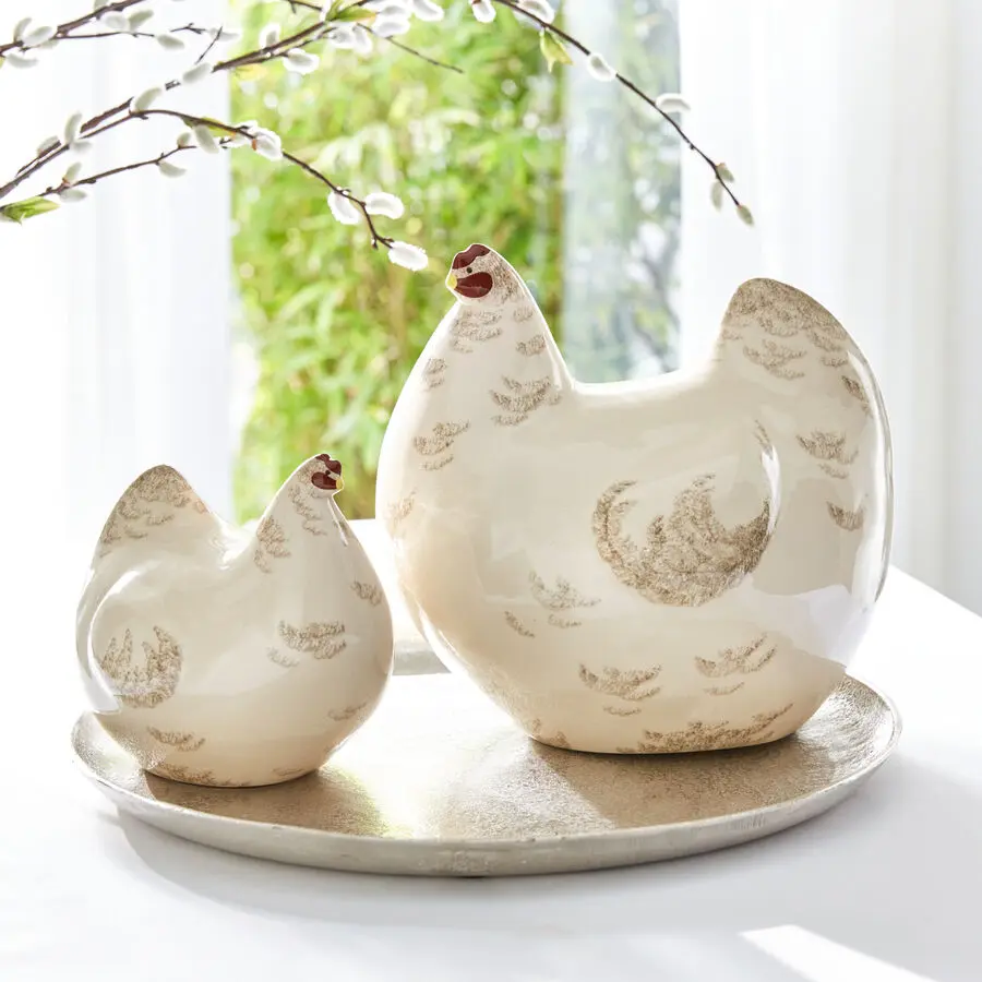 Célèbre design : poule en céramique faite à la main dans une manufacture du sud de la France, décoration de jardin