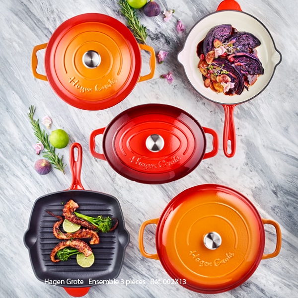 Offrir de beaux ustensiles de cuisson, c’est ouvrir la voie aux plaisirs de la cuisine. Pour les premiers pas derrière les fourneaux, un set de poêles invite à explorer différentes recettes, tandis que cocottes et poêles en fonte diffusent une chaleur douce et constante, révélant toutes les saveurs des cuissons lentes.