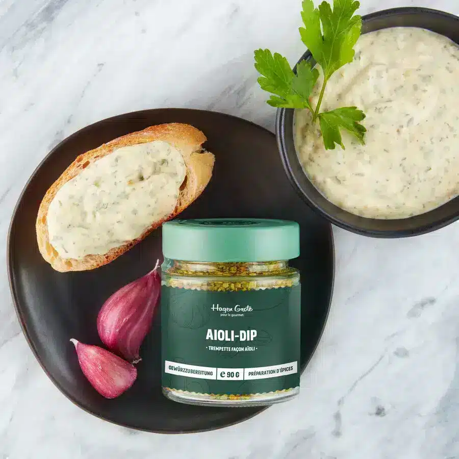Outre la version classique, il existe aujourd’hui de nombreuses variantes créatives. L’aïoli fumé apporte des notes grillées, tandis que l’aïoli aïoli piquant séduit par un piquant agréable. Quant à notre aïoli à la truffe préparé avec de la truffe d’été italienne (Tuber aestivum Vitt.), il apporte une touche raffinée. À accompagner idéalement d’une baguette croustillante à l’aïoli.