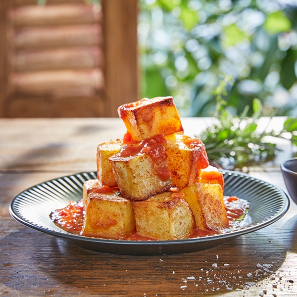 Les Patatas bravas sont un grand classique de la cuisine espagnole : des morceaux de pommes de terre frits, dorés et croustillants, servis avec une Salsa Brava relevée – une sauce tomate légèrement piquante et très aromatique.