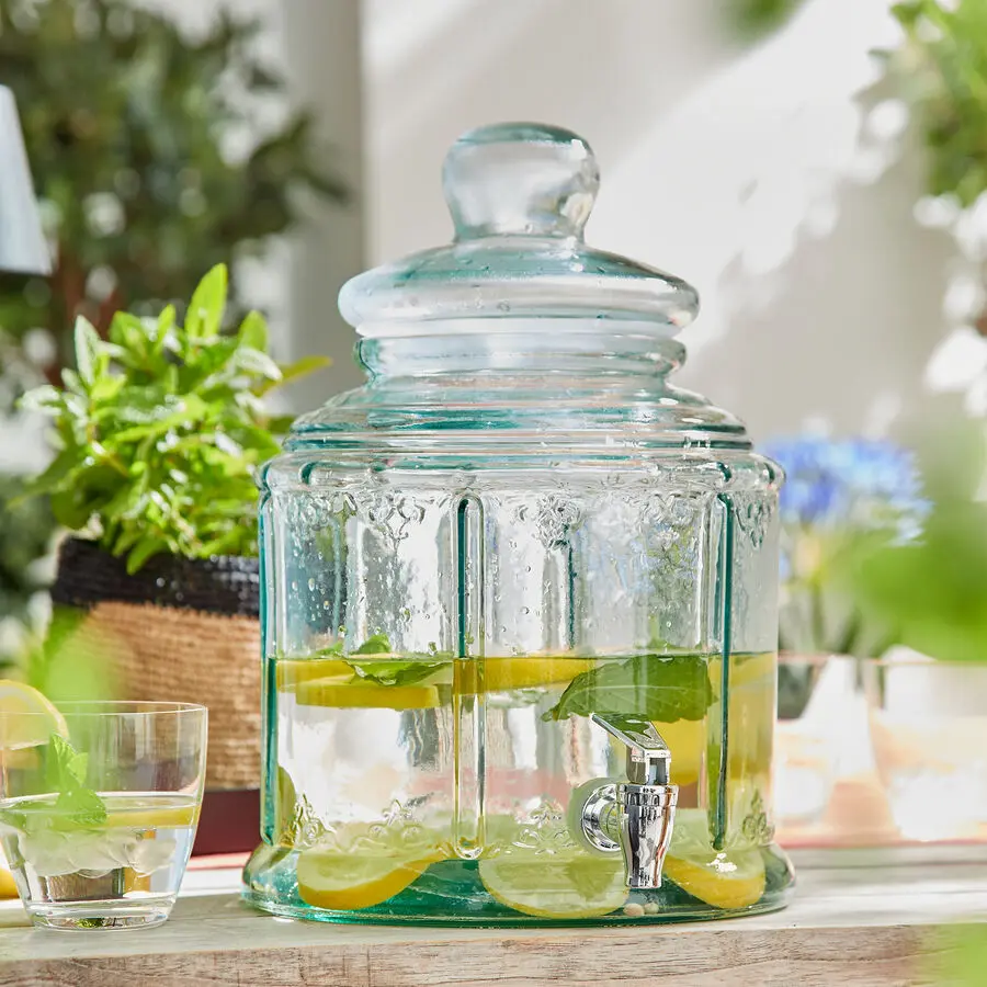 Le récipient hexagonal à décor nostalgique en verre vert scintillant contient 6,5 litres.